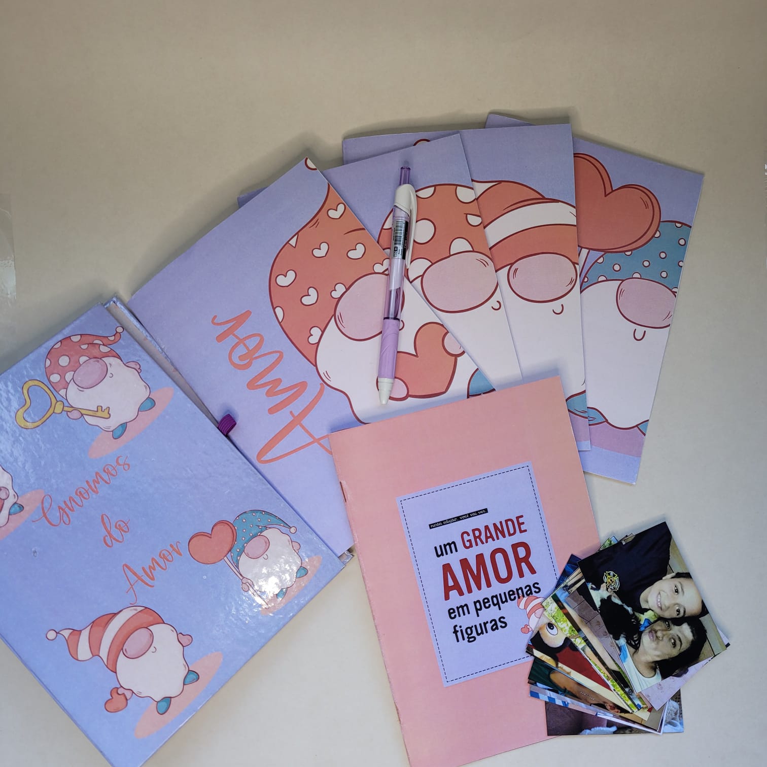 Contem 4 cadernos para anotar tudo sobre sua historia de amor